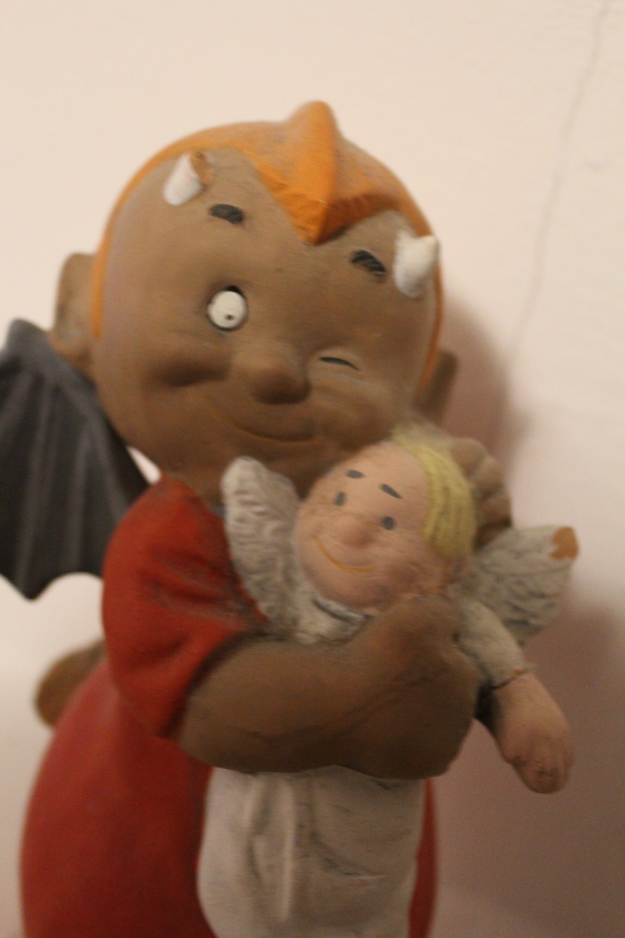Aber ich weiß auch noch, wie meine Mama dem damaligen Freund meiner Lieblingsschwester den Baum zu Händen gibt, dieser ihn in den Kofferraum seines heiß geliebten historischen Capris steckt, er den Kofferraumdeckel zuknallt und die Baumspitze am seidenen Faden traurig herunterhängt. Zu dieser Zeit war Naturschmuck angesagt, also nichts da mit festlicher Schmuckspitze. Obwohl er, zu Hause angekommen, die Tannenbaumspitze mit Sekundenkleber wieder an der Tanne befestigte, war damals, so glaube ich, schon klar, das er kein Schwiegersohn wird. Wegen dieses Spitzenunfalls heißt es jedes Jahr auf ’s Neue: pass auf die Baumspitze auf. Einen klitzekleinen Augenblick habe ich in dem Moment das Gefühl, meine kleine knubbelige Mama steht neben mir und schmunzelt.
