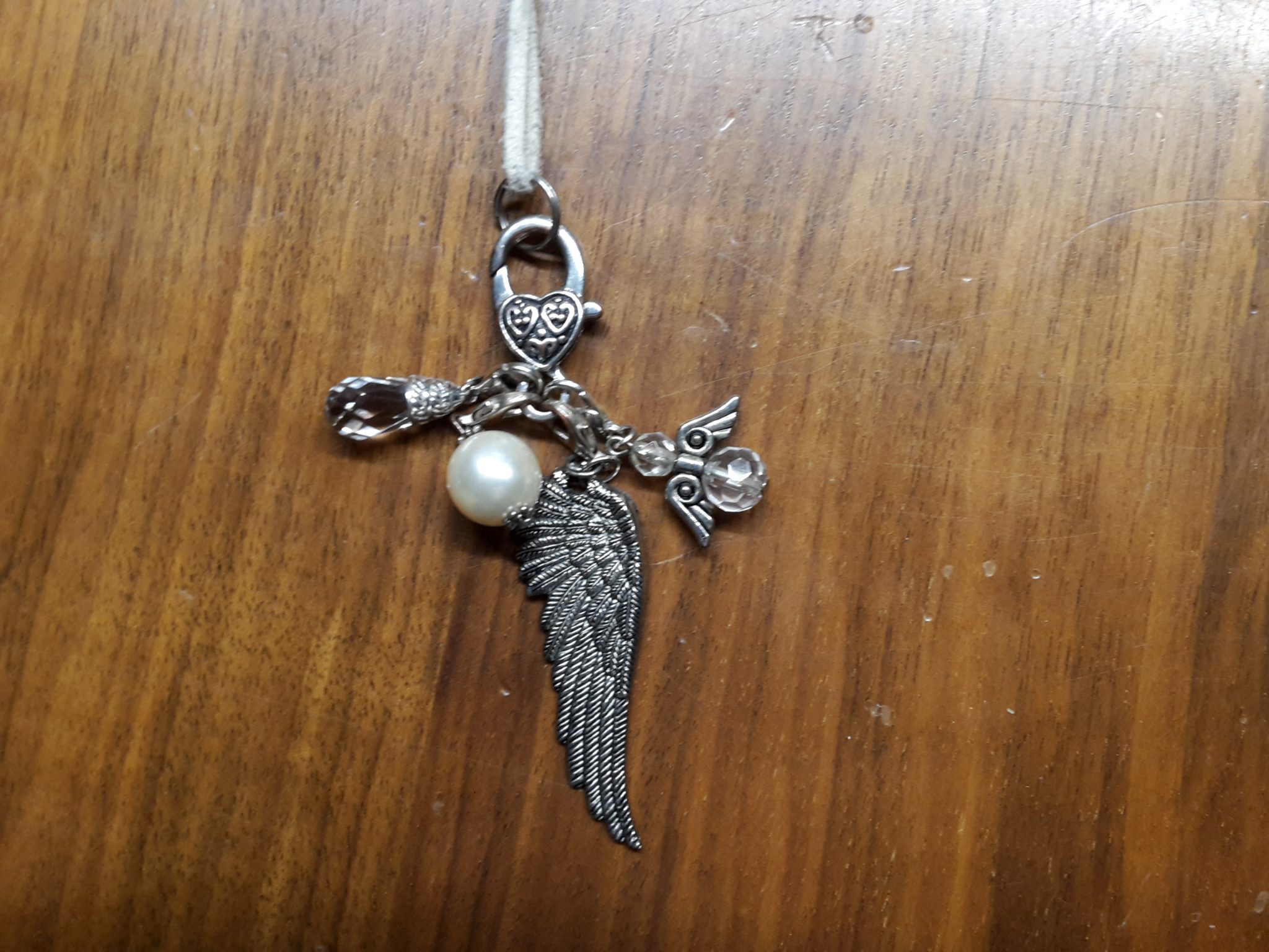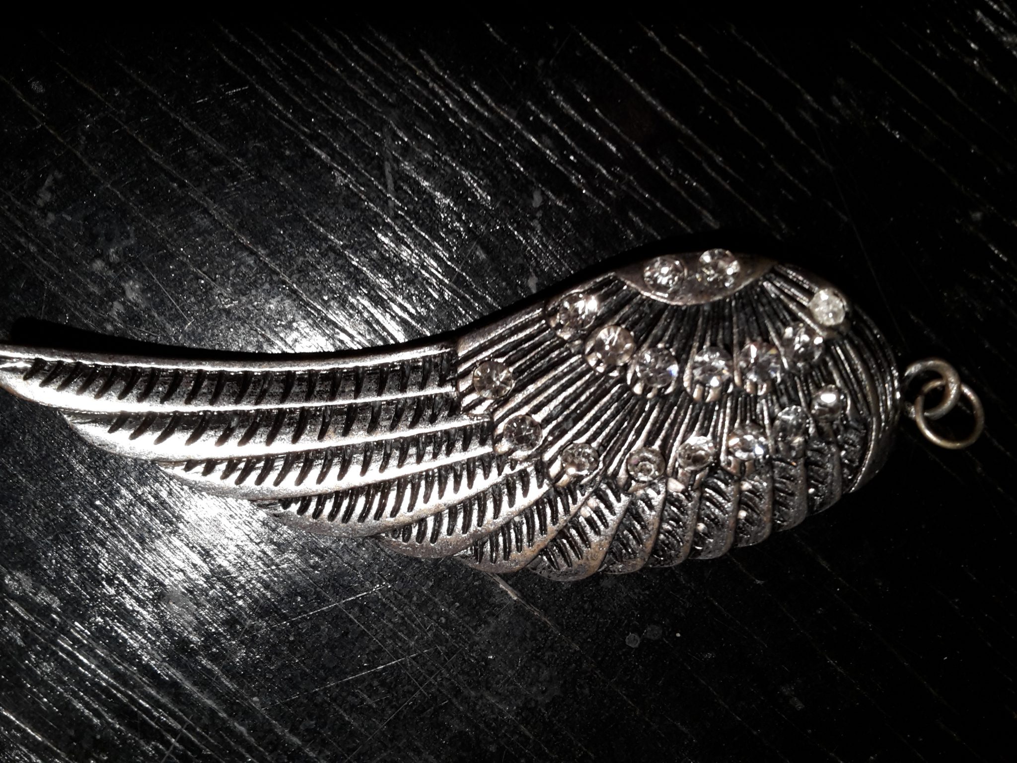 Den Engelsflügel an einer langen Kette wollte ich aber in jedem Fall haben. So einen ähnlichen habe ich in irgend einem Katalog gesehen, wo er schon ein bisschen das „ich will haben Gefühl“ ansprach. Aber preislich war er es mir nicht Wert.