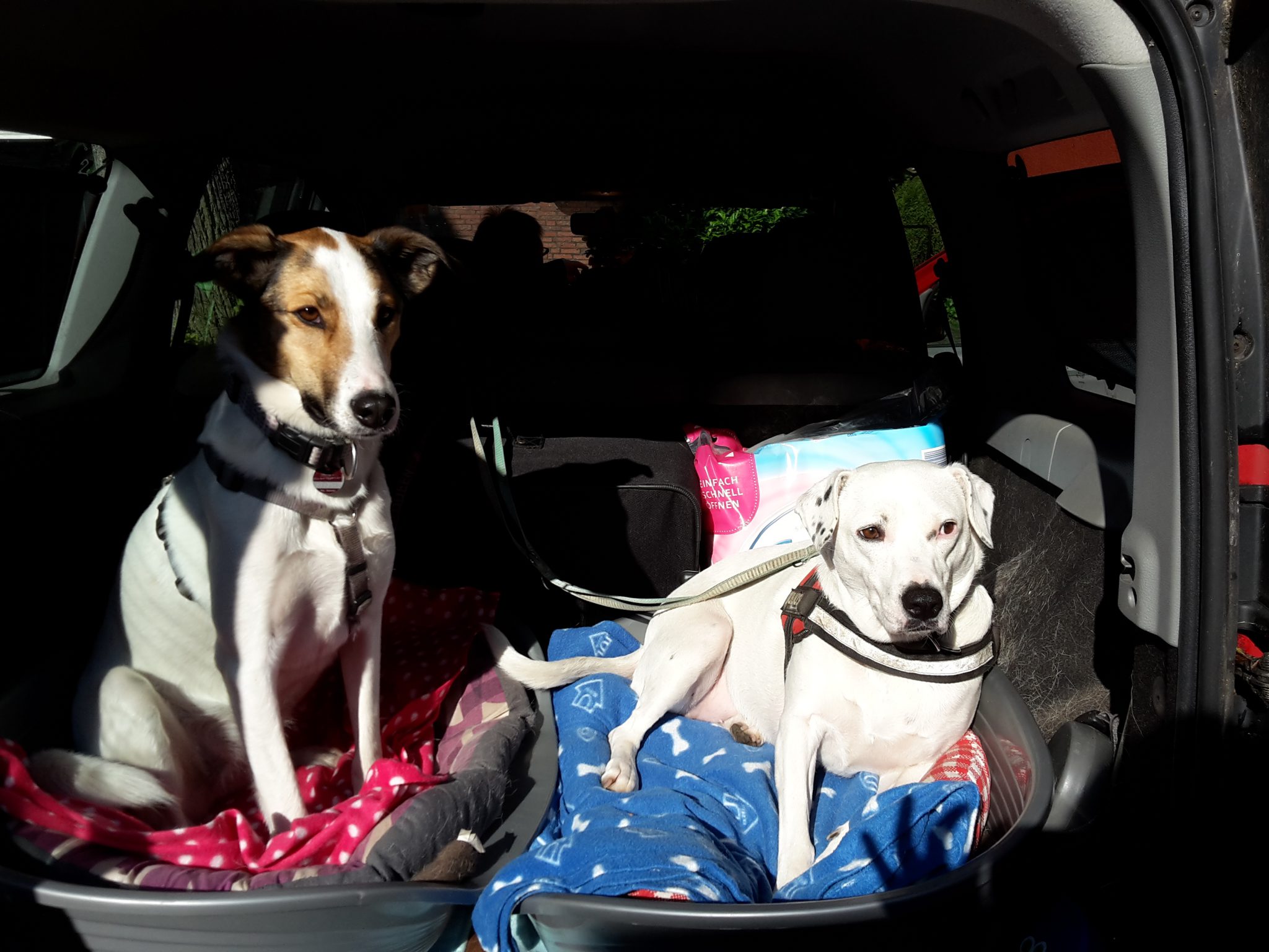 Meine Hundeschwester Feli ist völlig aufgeregt. Sie weiß nicht mehr, wen sie hüten soll, Herrchen oder Frauchen? Wen soll sie daran erinnern, dass sie mitgenommen wird? Ich könnte ihr sagen, dass sich Herrchen hüten nicht lohnt, da er immer wieder mit irgend welchen Taschen und Koffern zum Auto läuft und er keine Zeit für uns hat. Doch sie wird es mir so oder so nicht glauben. Ich bin da völlig locker. Ich lege mich auf meinen strategischen Lieblingsplatz auf dem Sofa und halte alles im Auge. Werden Leine und Geschirr endlich angelegt, dann weiß ich, es wird ernst! Angeschnallt geht es auf große Fahrt. Eine Bürozeitlänge von Frauchen heißt es nun schlafen, also alles wie immer.