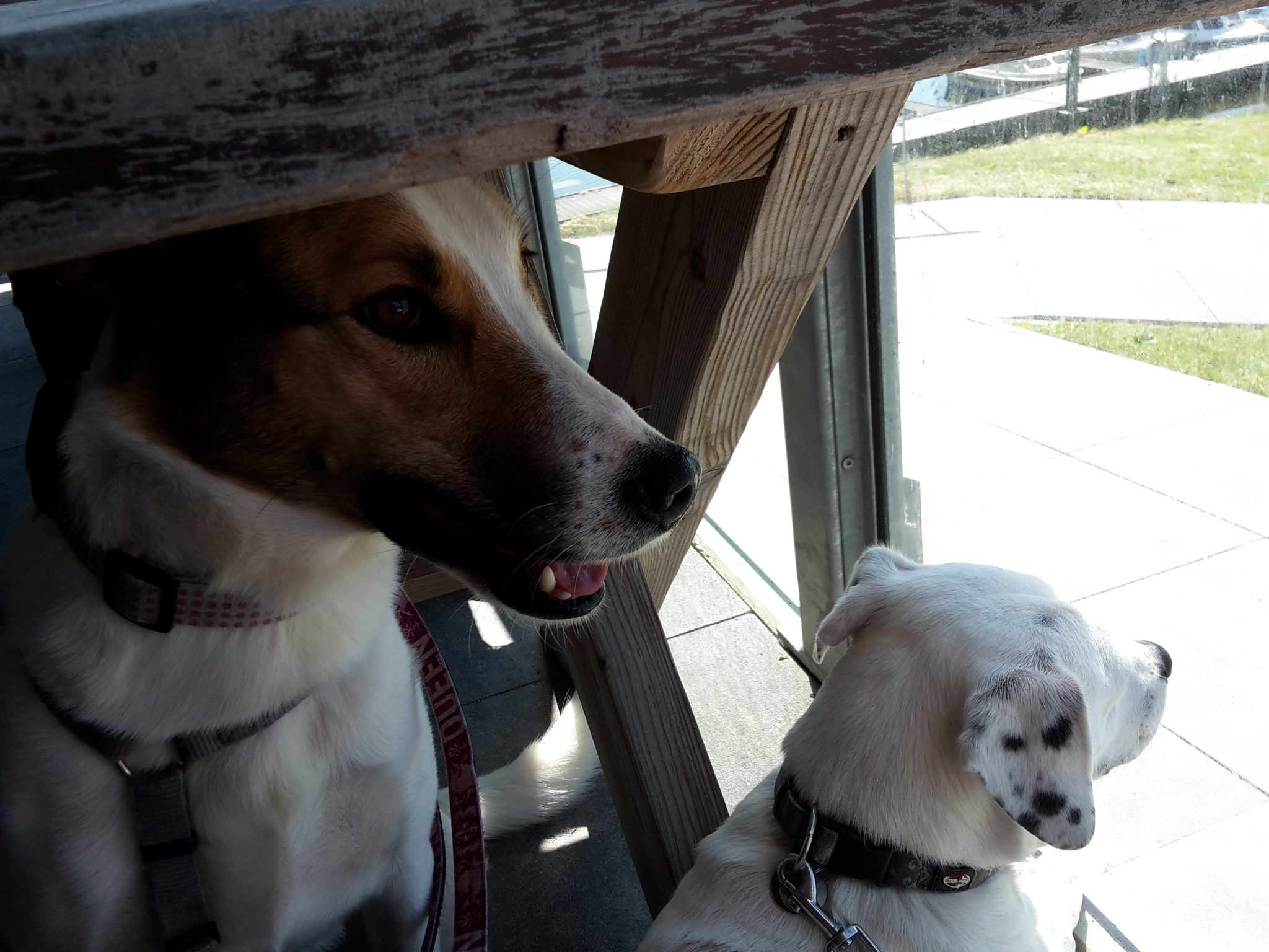 Im Hundeurlaub auf Texel haben wir natürlich noch andere Aufgaben. Beim Kaffee trinken im Jachthafen müssen wir Kinder und andere Hunde im Auge halten, denn wer weiß, ob die an unseren Tisch wollen, da müssen wir Bescheid sagen.