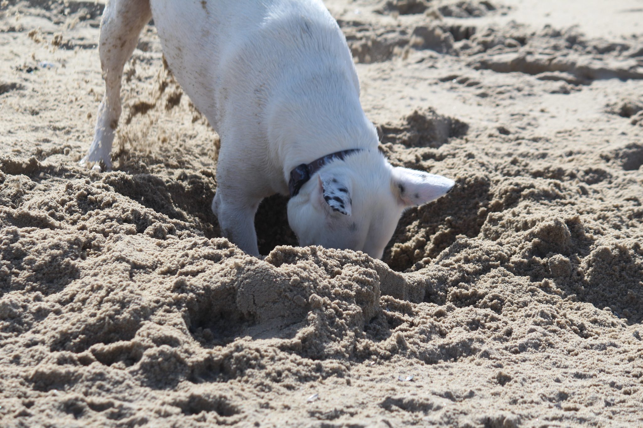 Frauchen sagt auch immer „Ah, Zina guckt noch eben in China nach dem rechten“. Ich nehme meine Aufgaben ernst, also buddel ich tiefe Löcher am Strand und schaue tief unten mal nach, ob dort alles in Ordnung ist.