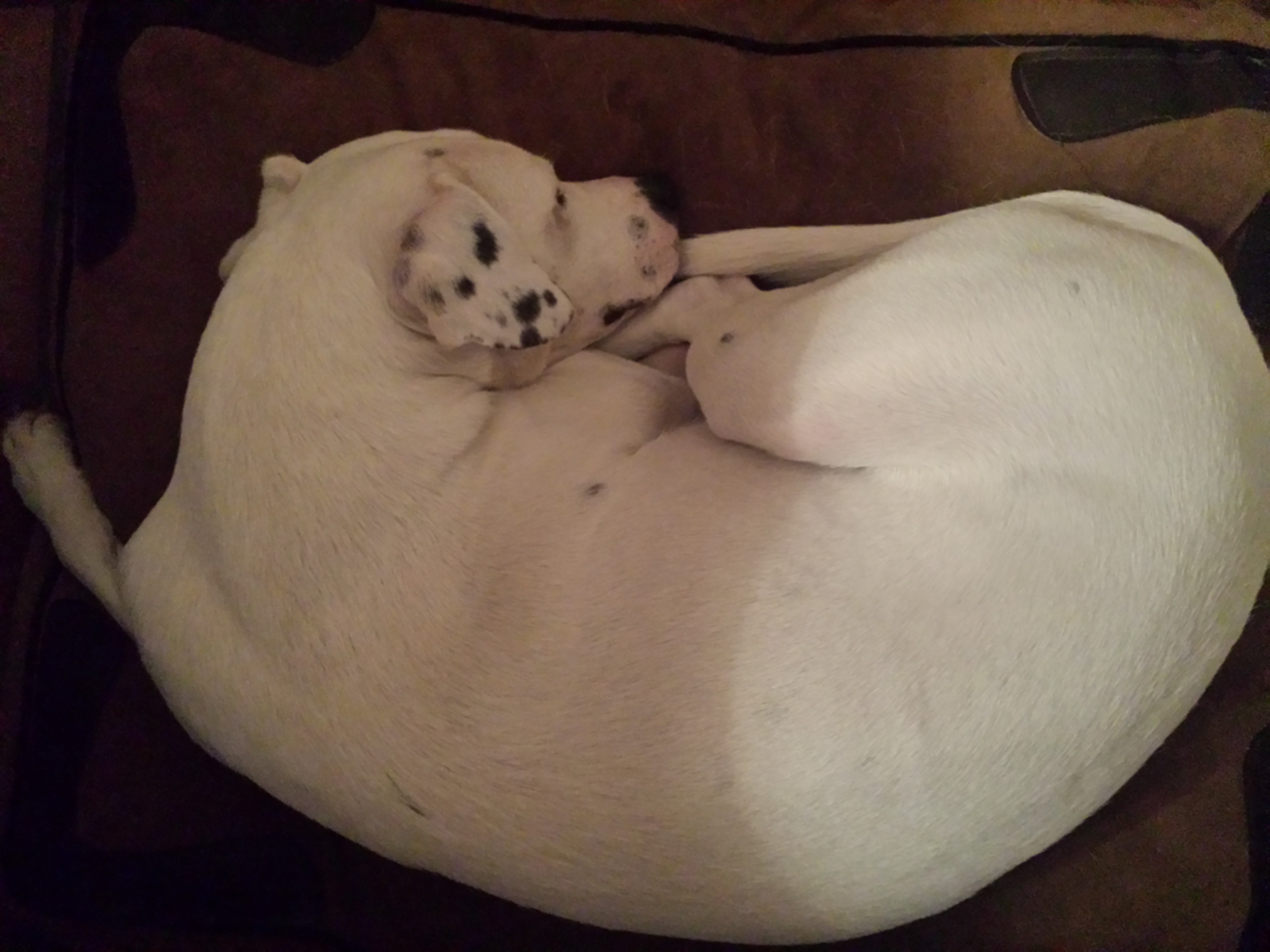 Die Mitternachtsstunde von null bis circa ein Uhr war für unsere zarte Feli die Hölle. Trotz Notfall Globolis war sie, im Gegensatz zu unseren anderen Hunden Elli, Cooki und Zina, nicht zu beruhigen. Sie zitterte schneller als ich Zittern schreiben kann und sah aus wie eines dieser Gummitiere bei denen man die Augen herausquellen lassen kann. Das Hecheln war so laut. Ich habe mich mit ihr ins Schlafzimmer zurückgezogen.