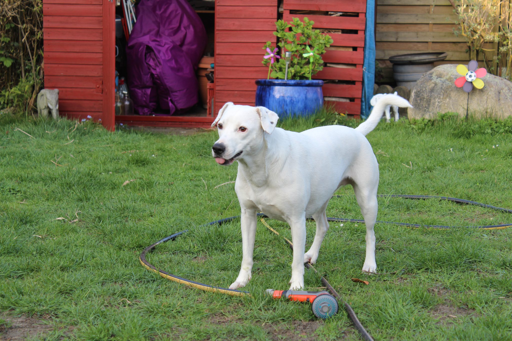 Dann kam auch noch Zinas und Felis Hundefreund Rico zu Besuch. In so einem Haushalt der Hundemädels muss so eine Hunderüde erst einmal im Garten nach dem Rechten schauen beziehungsweise nach dem Rechten schnüffeln. Ganz wichtig ist es für Rico auch Zeitungsartikel in die Hundezeitung zu schreiben, sprich, den Gartenzaun zu markieren. In den angrenzenden Gärten wohnen nur Hunderüden, da muss natürlich zu lesen sein, dass diese Hundemädels von Rico, dem Rüden, beschützt werden.