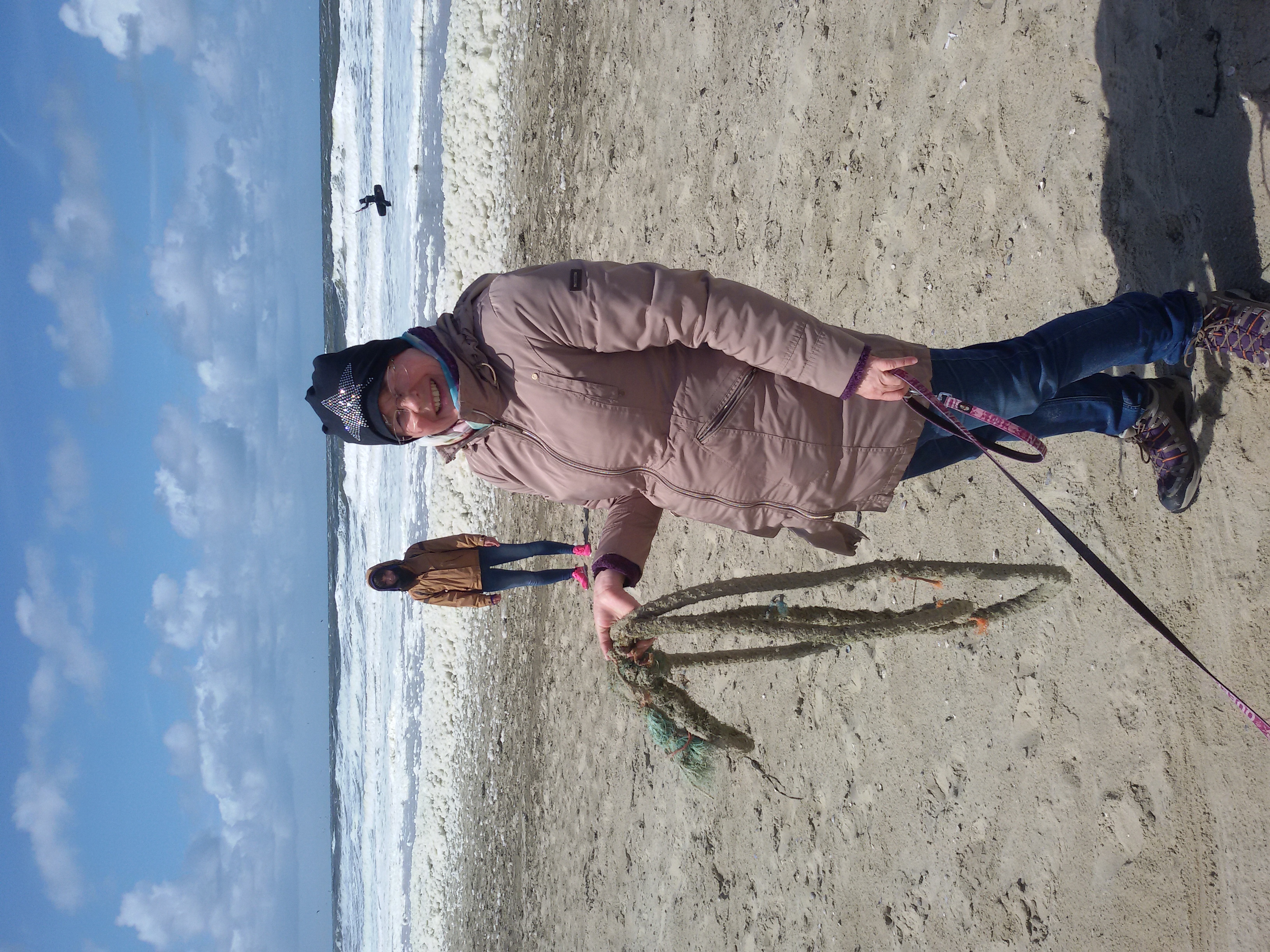eine steife Brise auf Texel ist gegeben, wenn die Flaggen waagerecht stehen und die Birgit als Michelinmännchen am Strand rumläuft, weil es nicht nur windig, sondern auch lausig kalt ist.